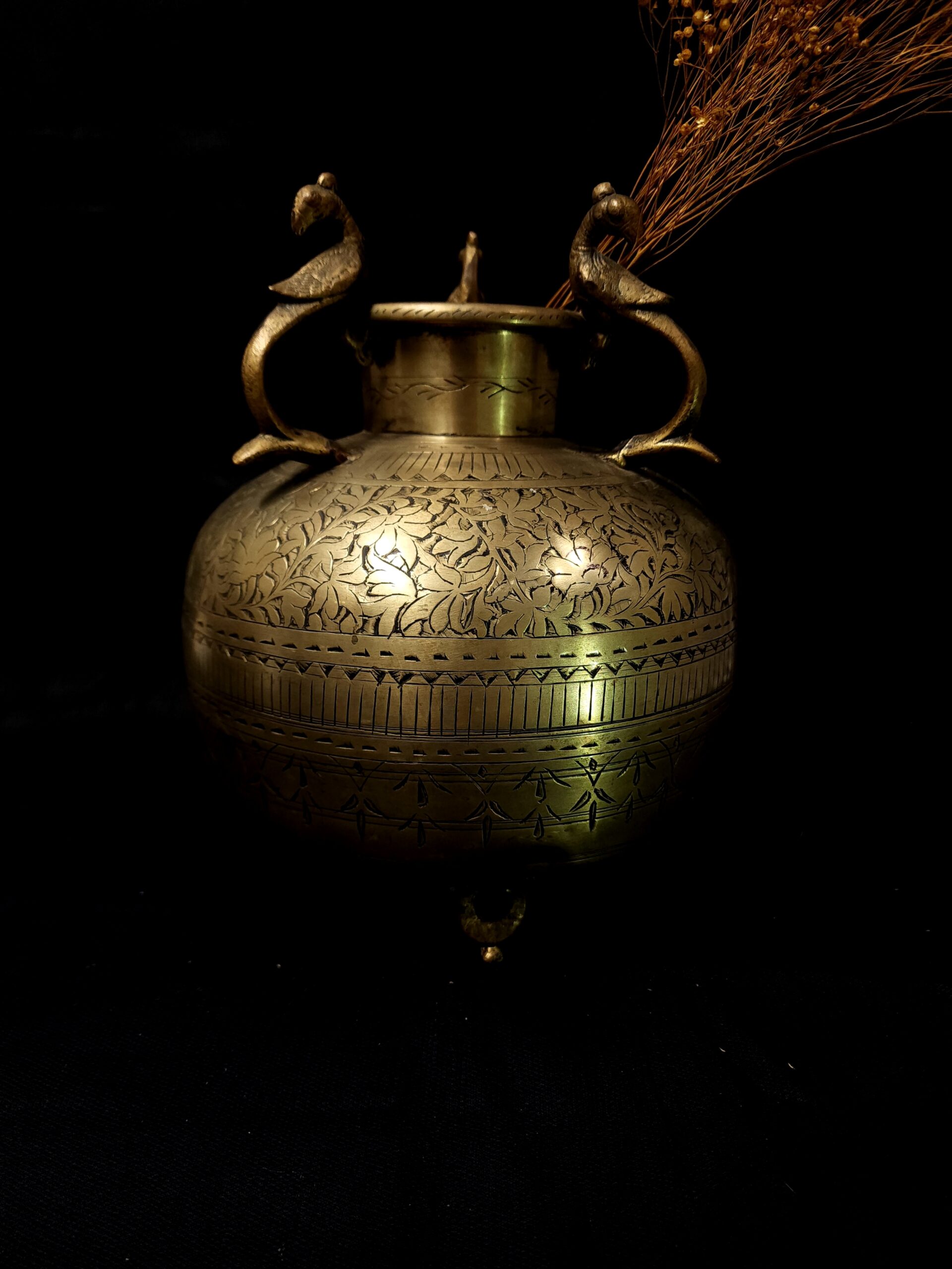 Vintage Intricatly Engraved Brass Pot quantity